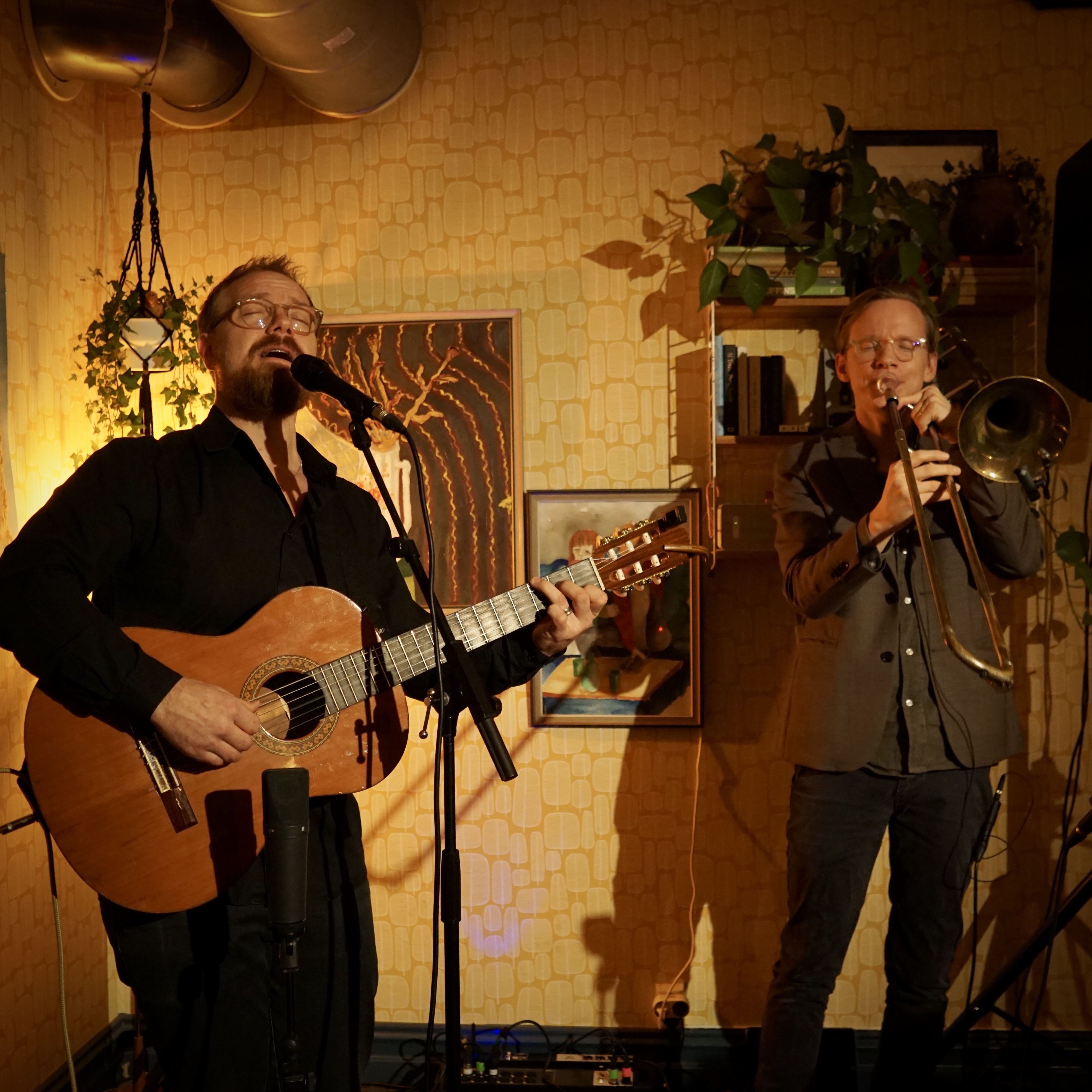 Daniel och Gustav vill bjuda på igenkänning och nytt material, väcka känslor och uppmana lyssnaren till egen reflektion. Det trygga, lekfulla gitarrspelet och den berättande sången tillsammans med trombonens dynamiska, varierade spel blir en visstund med inslag av improvisation och influenser från klassiskt, jazz och folkmusik.